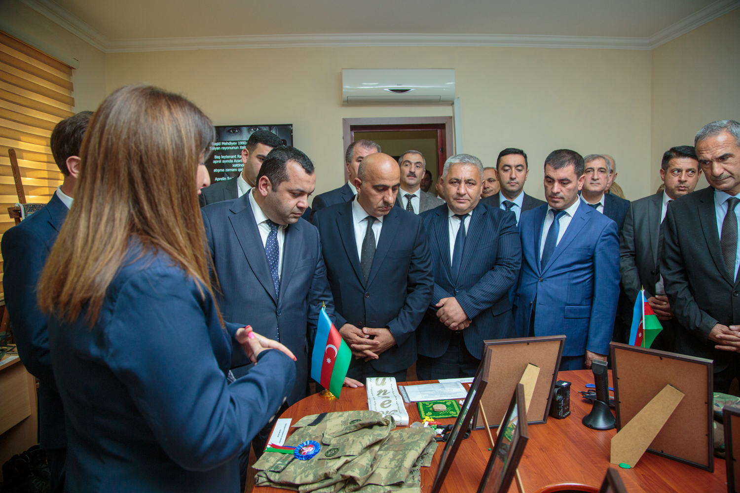 Salyan Rayon Heydər Əliyev Mərkəzində “27 sentyabr - Anım Günü”nün beşinci ildönümü ilə əlaqədar “Şəhidlik Zirvəsi: Milli Kimlik və Tarixi Yaddaş” mövzusunda tədbir keçirilib. Öncə Ümummilli Lider Heydər Əliyevin və torpaqlarımızın azadlığı uğrunda canlarını fəda etmiş qəhrəman Vətən övladlarının əziz xatirəsi bir dəqiqəlik sükutla yad edilib, Azərbaycan Respublikasının Dövlət Himni səsləndirilib. Tədbir boyu şəhidlərimizin şəkillərini əks etdirən videoçarx nümayiş olunub. Tədbirdə Salyan Rayon İcra Hakimiyyəti başçısının müavini Rəşad Cəbrayılov, Yeni Azərbaycan Partiyası Salyan rayon təşkilatının sədri Elmar Əhmədov, rayon Heydər Əliyev Mərkəzinin direktoru Nübar Bayramova, Səfərbəylik və Hərbi Xidmətə Çağırış üzrə Dövlət Xidmətinin Salyan rayon şöbəsinin zabiti, leytenant Xəyal Musayev, Salyan şəhər 1 saylı humanitar fənlər təmayüllü məktəb-liseyin müəllimi Bəhram Bağırov və rayon Ziyalılar Birliyinin sədri Allahverdi Piriyev çıxış edərək qeyd ediblər ki, 27 Sentyabr - Anım Günü xalqımızın qəhrəmanlıq salnaməsinin ən parlaq səhifələrindən biridir. Bu gün təkcə şəhidlərin xatirəsini anmaq deyil, həm də Azərbaycanın ərazi bütövlüyü və suverenliyi uğrunda canından keçmiş qəhrəman övladlarımızın Vətən sevgisini, mübarizə ruhunu gənc nəslə çatdırmaq baxımından xüsusi əhəmiyyət daşıyır. Çıxışlarda vurğulanıb ki, Azərbaycan Ordusunun şücaəti, xalqımızın birliyi və Prezident, Müzəffər Ali Baş Komandan İlham Əliyevin qətiyyətli rəhbərliyi sayəsində tarixi Zəfər qazanılmışdır. Bu qələbənin əldə olunmasında şəhidlərin qanı, qazilərin fədakarlığı mühüm rol oynamışdır. Onların göstərdikləri igidlik daim ehtiramla yad olunmalı, gələcək nəsillərə örnək göstərilməlidir. Həmçinin bildirilib ki, “Şəhidlik zirvəsi” Azərbaycan xalqının milli kimliyinin, dövlətçilik iradəsinin və tarixi yaddaşının ən ali dəyəridir. Şəhidlərin əziz xatirəsini yaşatmaq hər birimizin müqəddəs borcudur. Sonra tədbir Salyan Rayon Tarix-Diyarşünaslıq Muzeyində davam etdirilib. Tədbir iştirakçıları “27 Sentyabr - Anım Günü” ilə əlaqədar təşkil olunmuş “Əmanət qalan izlər” adlı sərgi ilə tanış olublar. Sərgidə Vətən uğrunda canını fəda etmiş qəhrəmanlarımızın şəxsi əşyaları, fotoları və digər xatirə nümunələri nümayiş etdirilib.