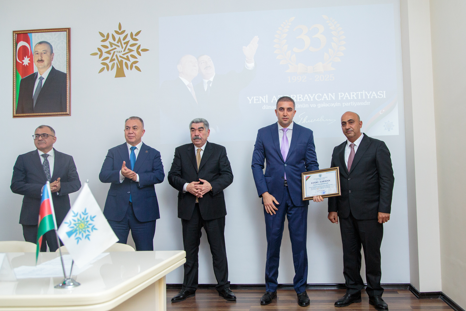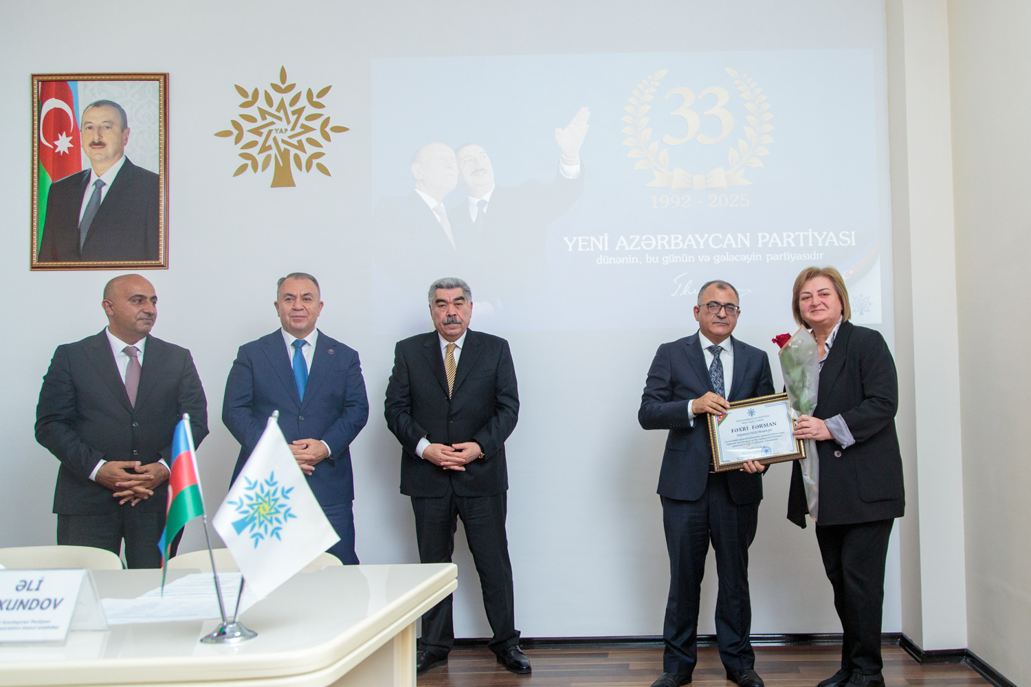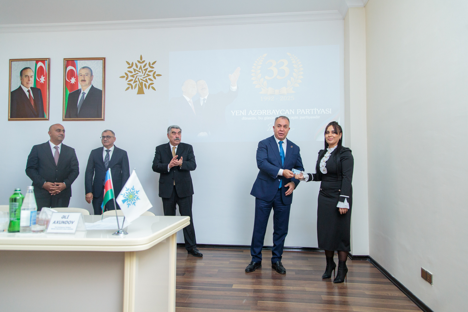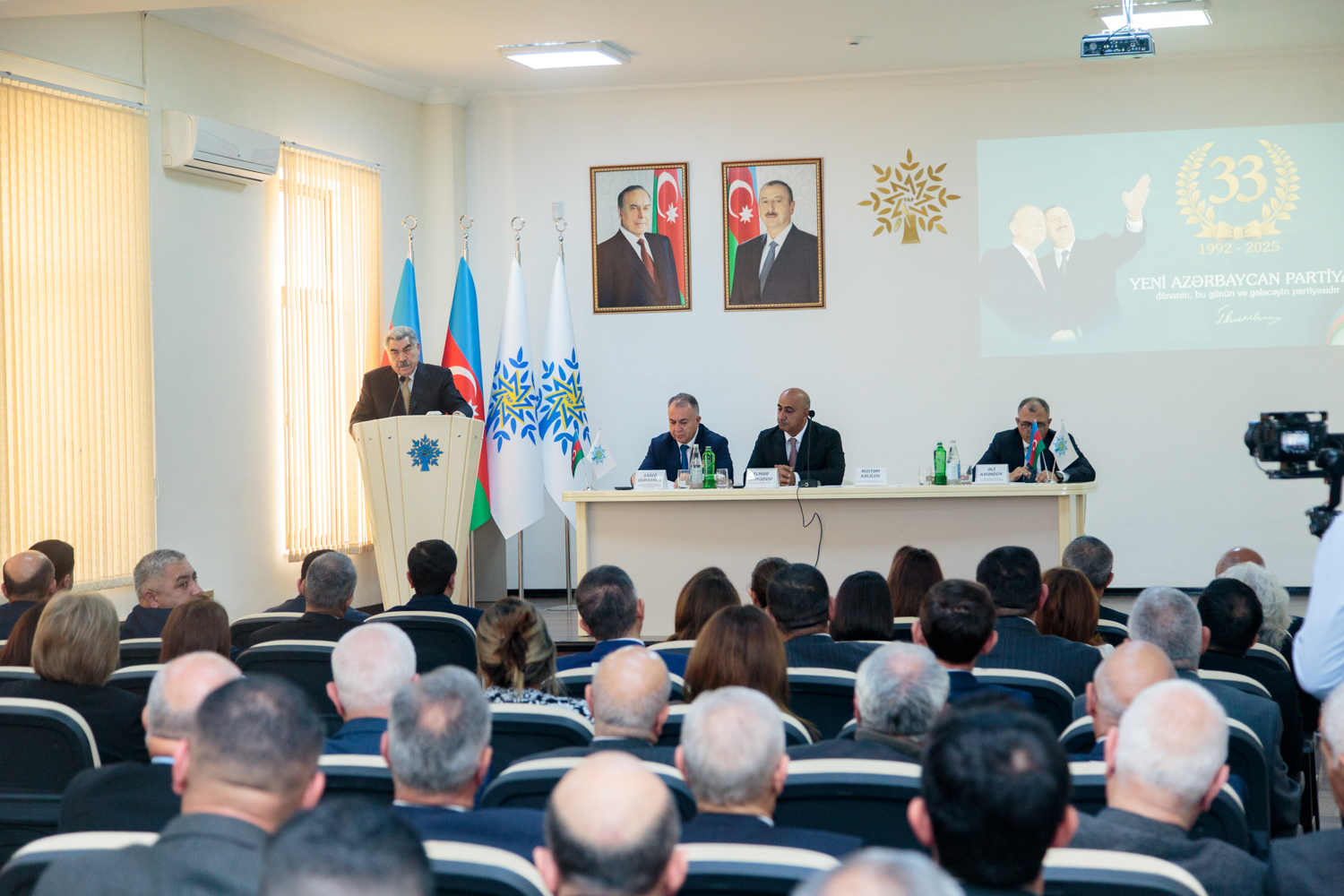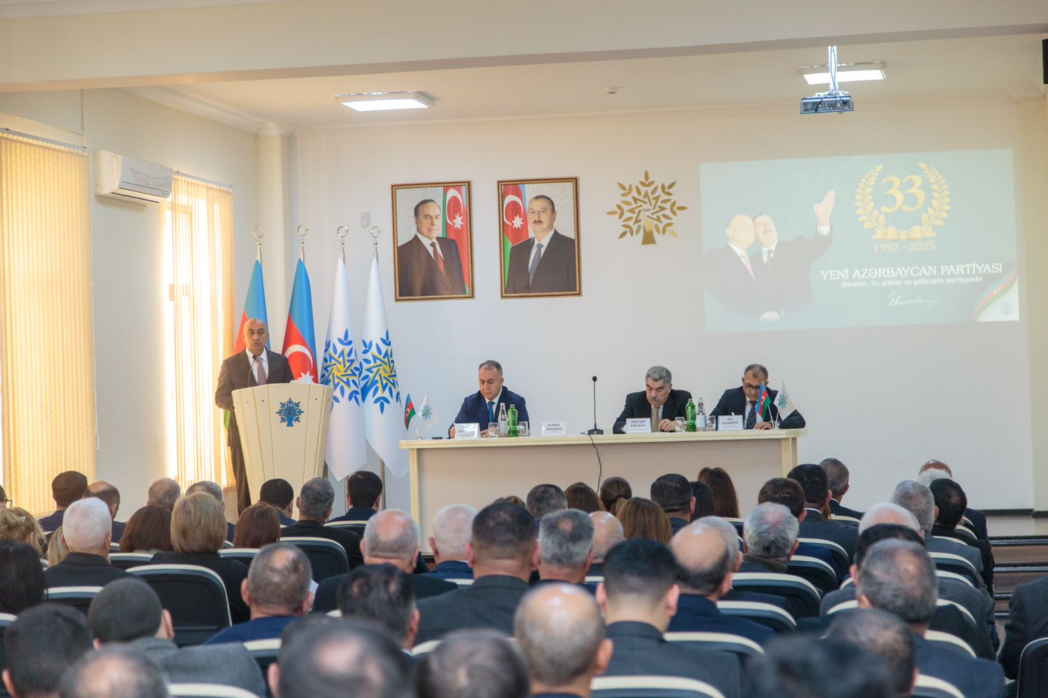 YAP Mərkəzi Aparatının məsul əməkdaşı Əli Axundov çıxışında qeyd edib ki, Yeni Azərbaycan Partiyasının təşkilati modeli illər ərzində daha da təkmilləşmiş, ölkənin bütün regionlarında sosial-siyasi fəallığın artmasına səbəb olmuşdur. Bildirib ki, partiyanın ideoloji xətti yalnız siyasi proseslərlə məhdudlaşmır, eyni zamanda ictimai həyatın müxtəlif sahələrində yenilənmə, inkişaf və milli həmrəyliyin güclənməsi kimi hədəfləri özündə birləşdirir. Vurğulayıb ki, bu gün YAP-ın gücü onun intellektual potensialı, gənclərin partiya sıralarında artan təmsilçiliyi və ümumi məqsəd ətrafında birləşən ziyalılar ordusudur. O, YAP-ın bundan sonra da ölkənin inkişaf strategiyasının həyata keçirilməsində etibarlı siyasi platforma olaraq fəaliyyət göstərəcəyini bildirib. Digər çıxış edənlər Yeni Azərbaycan Partiyasının yaranma zərurətindən və həmin dövrün siyasi reallıqlarından söz açıblar. Qeyd ediblər ki, partiyanın yaradılması Azərbaycan dövlətçiliyini böhranlı vəziyyətdən çıxaran, xalqın milli birlik və həmrəylik duyğusunu bərpa edən tarixi qərar idi. Çıxışlarda həmçinin vurğulanıb ki, YAP bu gün yalnız siyasi təşkilat deyil, dövlətçilik düşüncəsini, ictimai məsuliyyəti və milli məfkurəni cəmiyyətə aşılayan böyük bir məktəbdir. Sonra rayonun ictimai-siyasi həyatında fəal iştirakına görə bir qrup partiya fəalına fəxri fərman, YAP sıralarına yeni qoşulmuş gənclərə isə üzvlük vəsiqələri təqdim edilib. Konfransa Yeni Azərbaycan Partiyasının Himninin səsləndirilməsi ilə yekun vurulub.